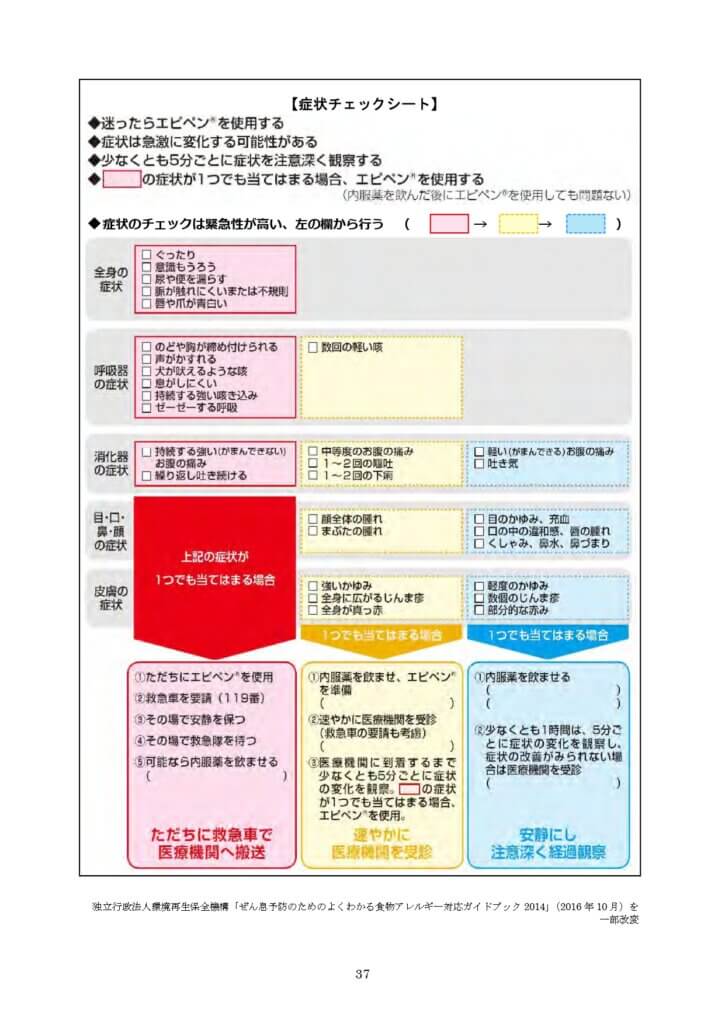 1つでも当てはまる場合、緊急性が高いアレルギー症状への対応として以下の手順を踏みます。
