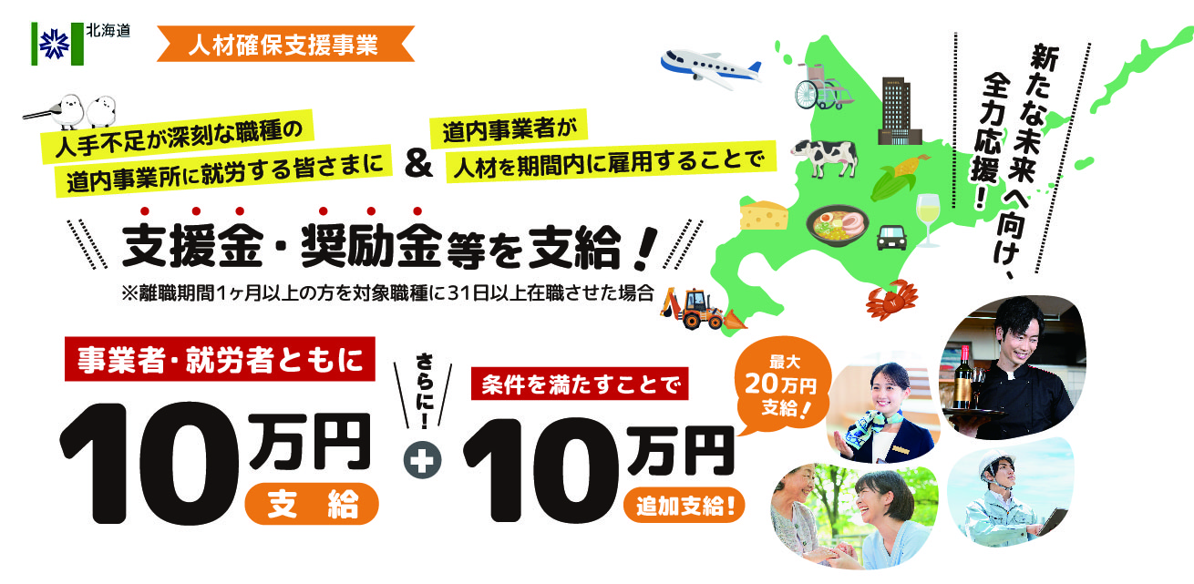 北海道が実施するこの事業は、離職期間が1ヶ月以上ある方が道内の保育施設などで就労した場合、本人と受け入れ事業所それぞれに10万円の支援金が支給される制度です。さらに、遠方からの就労に伴う引越しや移動にかかる費用も、上限10万円まで補助されます(※通勤にかかる交通費は対象外)。書類の申請受付期間は2025年7月31日(木)(当日消印有効)まで! 申請募集人数は300人なので早めに申請するのがベストです!
