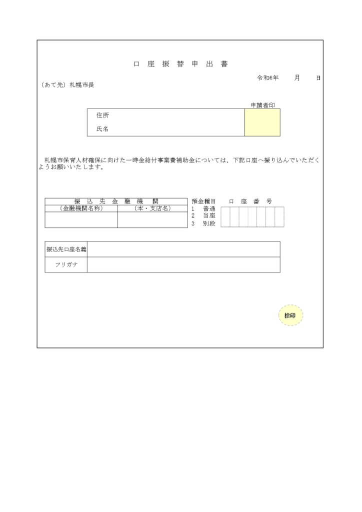 - 口座振替申出書(様式2)
