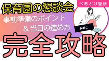 保育園の懇談会完全攻略ガイド!事前準備のポイントや懇談会当日の進め方を解説【スピーチ例付】 【保育士必見!】保育園の懇談会までもうすぐ!当日に慌てることがないよう押さえておきたいポイント&スピーチ例を紹介しています。懇談会の準備に是非ご活用ください! 2025.06.27 保育コラム
