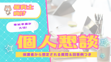 保育士必見!保護者との個人懇談でよく聞かれる質問とその対応法 保育園の個人懇談は、保護者と保育士が1対1で子どもについてじっくり話し合える大切な時間です。保護者との距離をぐっと縮め、保護者との信頼関係を築くチャンスでもあります。本記事では個人懇談のねらいや保育士が話すこと・聞くことをまとめています。また厚労省のデータを基に、懇談会で保護者から聞かれる質問を想定・その対応方法を解説していきます。 2024.09.06 保育コラム